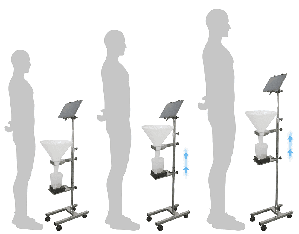Reajuste la altura del soporte para que se adapte desde los pacientes más bajos hasta los más altos.